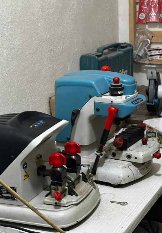 Dükkanınızda görülen profesyonel kesim makineleri ve geniş araç anahtar duvarı sayesinde: